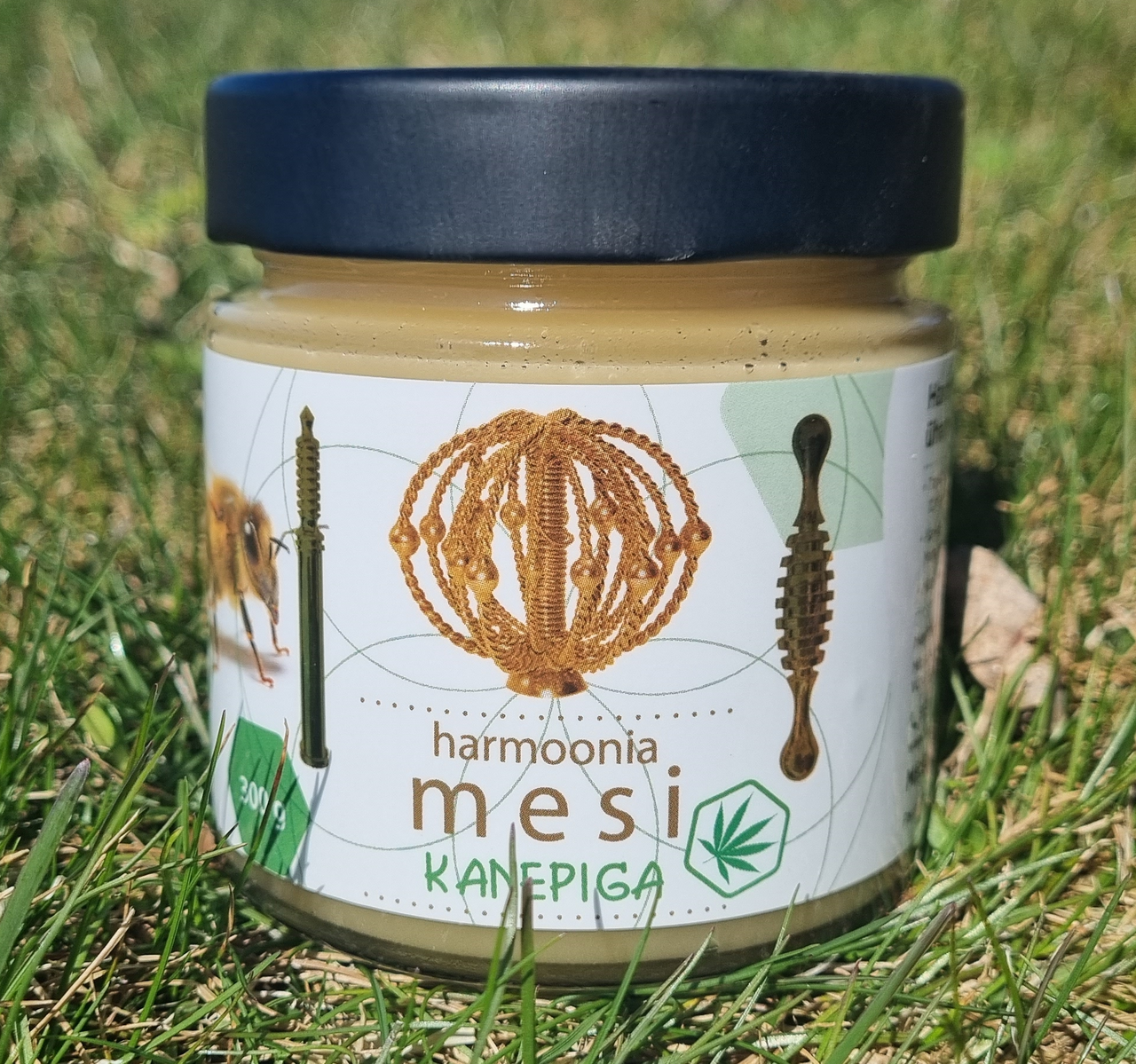 Harmoniseeritud looduse ühendväljas korjatud mesi. Vahustatud ja lisatud 10ml CBD kanepiõli 10kg mee kohta.